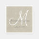 Beige Linen Grey White Monogram Wedding Keepsake Napkin