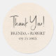 Whimsical minimalistic modern, customisable script typography, welcome wedding gift sticker. The light beige linen printed texture background adds a touch of organic feel of classic elegance. Other colours are available.