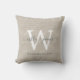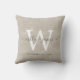 Beige Linen White Monogram Wedding Keepsake Cushion