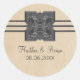 Regal and elegant Medallion Border Wedding Stickers featuring a digital art metallic medallion and a three stripe border on a subtle beige background. These bold and stylish wedding stickers are perfect for an equally bold and stylish wedding and are great for favours or envelope seals. Easy to customise, simply add the details of your wedding in the text fields provided. Click on "Customise It" to find additional personalisation options such as changing fonts or text size.