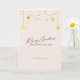 Light beige minimalistic Christmas folded card with gold star accents, customisable text for your message, and a custom photo on the back.