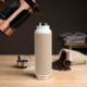 Trendy, vacuum insulated water bottle that features personalised name in white, modern typography on a trendy, beige colour background. Personalise bottle by editing name and replacing name with your own as desired. Perfect for a birthday gift, wedding groomsman gift, etc. Select your water bottle style. Select your water bottle style.