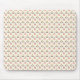 Beige mousepad with a repeating floral pattern of pink roses and green leaves shown in two views; once alone and once paired with a white mouse.
