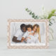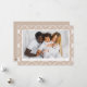 Festive holiday card featuring your horizontal photo framed in white with a beige and white nordic snowflake patterned background. Personalise the nordic snowflake Christmas card with your custom greeting and family name in beige lettering. The card reverses to display your personal message.