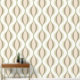 Beige Olive Sage Green Ivory Ogee Wave Pattern Wallpaper