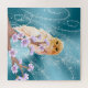 Beautiful Beige Owl sitting on a Purple Floral Tree Branch with a Magical Blue Sky swirling with Silver Sparkle.