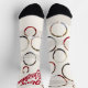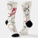 Photo Christmas socks with round photos, script text in red, and a beige background. These socks are a fun way to add more photos to your holiday. Simply add your photos, add these socks to your cart, and enjoy wearing them on your feet!