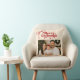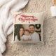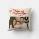 A soft beige background, red text and a hand-drawn bow. Text and photo. Merry Christmas is written with a retro style font.
