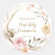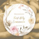 beige pink flowers First Holy Communion Classic Round Sticker