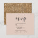 Beige Pink Modern Gold Glitter Wedding RSVP Reply Card