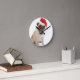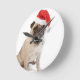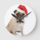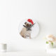 Cute beige pug dog wearing a red santa claus hat on a white background
