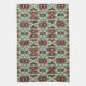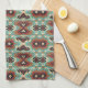 Beige Red Brown Aqua Blue Green Black Tribal Art Tea Towel