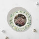 Beige Round/Square Snowberry+Eucalyptus Photo Holiday Card