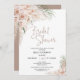 Sweet bohemian floral bridal shower invitation featuring two bohemian floral arrangements in blush, natural tones and a hint of sage green . The back of the invitation is is a beige, tan color but can to altered. This bridal invitation also features a mono-line modern calligraphy image heading that is removable.