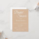 Simple style, bridal shower invitation that features a trendy, beige colour background along with the future bride's name and party event time and location, contact, etc., printed in white, stylised lettering. Personalise your invitation by replacing text with your own bridal shower information. Select your invitation paper style and quantity.