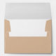 Beige coloured mailing envelope for your wedding invitations and features your name and address printed on back flap in a modern script style. Personalise your envelope by editing and replacing name and address with your own. Edit further to change font style or colour. Select your envelope size that fits your invitation.