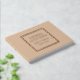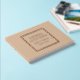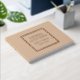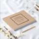 Solid beige colour, simple wedding guest book with stylised foil print within a square border that features the bride and groom's name along with wedding date in your choice of colour foil print. Seen here in rose gold foil print. Select your guest book style.