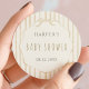 Beige Stripes with Scalloped Frame Baby Shower Classic Round Sticker