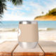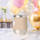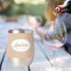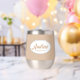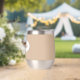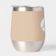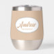 Gift your wedding groomsman with this trendy and personalised, stainless steel wine tumbler with his name in stylised script inside a white, oval design. Background colour and script is beige. Personalise your wine tumbler by editing and replacing name with desired name. Available in many, popular wedding colour schemes.
