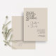 Chic black and white wedding invitation. This minimalist invitation features a contemporary set of soft brownish black fonts in bold and script, against an elegant neutral beige-taupe background. Available in a selection of complimentary colours, these invites are easy to mix and match with the rest of the stationary in the collection making it versatile for weddings during all seasons.