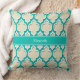 Beige Teal Wht Moroccan #4DS Teal Name Monogram Cushion