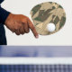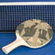 Beige triangular cutout on 'dark green background' ping pong paddle