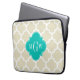 Beige White LG Chevron Teal Name Monogram Laptop Sleeve