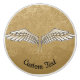 Wide open beige wings illustration. Grunge beige background. Custom text.