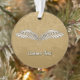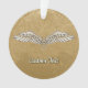 Wide open beige wings illustration. Grunge beige background. Custom text on both sides.