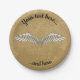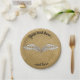 Wide open beige wings illustration. Grunge beige background. Custom text.