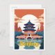 Beijing China Travel Vintage Illustration Postcard