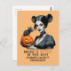 Retro vintage woman rat illustration with Halloween pumpkin.