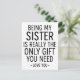 “Sister Gift Quote – Being My Sister Is the Only Gift You Need Design | Funny Sister Saying Artwork“