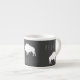 Funky And Stylish Belarusian / European Bison Minimalistic Coffee Espresso Mug / Cup to add to your travel memorabilia / drinkware collection. A cool gift / present idea for all who love custom design items, positive vibes, travelling, remote destinations, is of a Belarusian Descent etc. Bisons, national symbol, wild animals, Belarus. Grey and white.