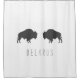 Funky And Stylish Belarusian / European Bison Minimalistic Shower Curtain to add to your travel memorabilia / home / office / business décor collection. A cool gift / present idea for all who love custom design items, positive vibes, travelling, remote destinations, is of a Belarusian Descent etc. Bisons, national symbol, wild animals, Belarus. Grey and white.