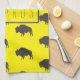 Funky And Stylish Belarusian / European Bison Kitchen Towel to add to your travel memorabilia collection. A cool gift / present idea for all who love custom design items, positive vibes, travelling, remote destinations, is of a Belarusian Descent etc. Bisons, national symbol, wild animals, Belarus. Red, green, white, national flag colour stylised bison. Change the background colour (yellow) to suit your style.