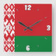 Belarus Flag Dazzling Patriotic Square Wall Clock in the colors and the elements of the Belarus national flag covering the front of the clock. National flag colors are complemented with the text "Belarus" on the bottom. Text is fully customizable using "Customize it!" feature. Feel free to change it, remove it or add your own. This charming design is the stunning gift and the great show piece on the wall. © CountriesOfTheWorld