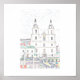 Funky And Beautiful Stylized Architecture Minsk Sketch Poster to add to your home / office / business wall decor collection. A cool gift / present idea for all who love custom design personalized items, positive vibes, traveling, minimalism, landscapes and nature etc. Keywords: blue, sky, clouds, monochrome, wonder, architecture, landscape, magnificent, remote unknown destination, travel, Europe, European, ornament, dream, art, photo etc.