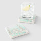 The coasters are gorgeous, a quality feel and heavy weight. They look like a precious archeological find. A rustic stone juxtaposed with a modern floral black and white print. I like the way the print goes slightly imperfect on the cut stone edges giving them a kind-of natural beauty.