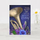 The floral arrangement and metallic instrument give the card an elegant belated-celebration feel — ideal for late wishes sent with beauty, sound, and heart. A thoughtful card for those who love brass music, floral visuals, bold colour and stage presence.