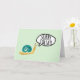 Cute belated birthday card features a little snail illustration in swirly teal and tan watercolors, with a speech bubble reading "Sorry I'm late!" Inside message defaults to Happy Belated Birthday but can be customised however you choose!