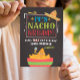 Give someone a chuckle while wishing them a belated happy birthday with this unique card, featuring the message, "It's NACHO birthday! Yeah that day already kinda happened. (sorry!)". The design features festive, colourful typography with nachos and hat illustration on black background. Inside can be customised with your message, but has this text: So sorry I missed it. Hope it was a great celebration all the same. Happy belated birthday!