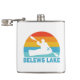 The flask itself is fine. It’s a cheap flask, obviously bought in bulk, however am prepared to overlook that. Given that it is a personalized item, I would have liked to have seen gift boxing instead of the generic packaging. Terrible printing, and/or quality. It’s a cheap, tacky vinyl. It is not cut straight and is also applied in a way that it is overhanging the bottom, causing the glue to catch on items and it will eventually roll and tear, damaging the wrap.