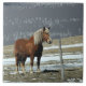 Belgian Draught Horse In Paddock, Ceramic Tile. Digital Art. Single Belgian horse in winter paddock behind barbed wire fence. Fits well in farm or ranch decor. Fully customisable; make it your own.
