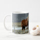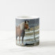 Belgian Draught Horse In Paddock, Coffee Mug. Digital Art. Single Belgian horse in winter paddock behind barbed wire fence. Fits well in farm or ranch decor. Fully customisable.