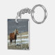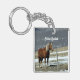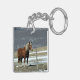 Belgian Draught Horse In Paddock, Keychain. Digital Art. Single Belgian horse in winter paddock behind barbed wire fence. Fits well in farm or ranch decor. Customisable. Edit the name to your needs, or remove it entirely.