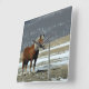 Belgian Draught Horse In Paddock, Wall Clock. Digital Art. Single Belgian horse in winter paddock behind barbed wire fence. Fits well in farm or ranch decor. Fully customisable; add your own numbers, or leave it as is.