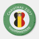 Round magnet for Christmas decor featuring an angel dressed in the flag of Belgium. The angel is found inside a white fractal circle of squiggly squares with a background of green squiggly squares. Add your own text, if you wish. Personalise with a name and customise with the year. Fun stocking stuffer. Honour your Belgian heritage during the holiday season. Lovely stocking stuffer, too.