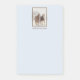 Personalised post-it notes with an outdoorsy photograph featuring a team of 2 belgian draught horses pulling a sleigh. Snowflakes gently falling down with snow covered pine trees in the background. Paper colour is light blue.