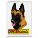 An alert and energetic Belgian Malinois is featured on this design with the breed name.
